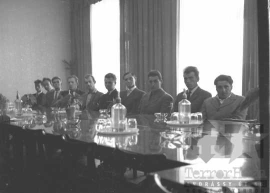 AZONOSÍTÓ: THM-BJ-00740 Zenészek asztal mellett játszanak. [TOTÉV: Tolna megyei Tatarozó és Építő Vállalat 1950. október végén a megyeszerte működő kisipari szövetkezetek összevonásával alakult meg, 1968 közepére szocialista középvállalattá nőtte ki magát Tm. Tanácsi Építőipari Vállalat néven.] HELYSZÍN: Szekszárd, Tolna megye DÁTUM: 1977 FOTÓS: Bakó Jenő
