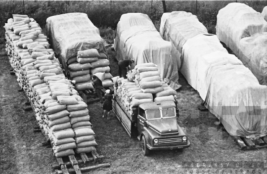 takarmány zsák Csepel teherautó üzem Dombóvár Tolna megye Magyarország 1967 Bakó JenőFotó részletei