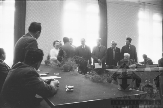AZONOSÍTÓ: THM-BJ-00716 A rendezvény résztvevői. [A szocialista brigádmozgalom szovjet mintára az 1950-es évek végén kezdett kibontakozni Magyarországon, és rendszerváltoztatáskor szűnt meg. Kezdetben csak az ipari üzemekben és gyárakban alakultak meg a brigádok, majd az agráriumban és a hivatali szférában is létrejöttek. A mozgalom jelszava: „Szocialista módon dolgozni, tanulni és élni” volt.] HELYSZÍN: Szekszárd, Tolna megye DÁTUM: 1977 FOTÓS: Bakó Jenő