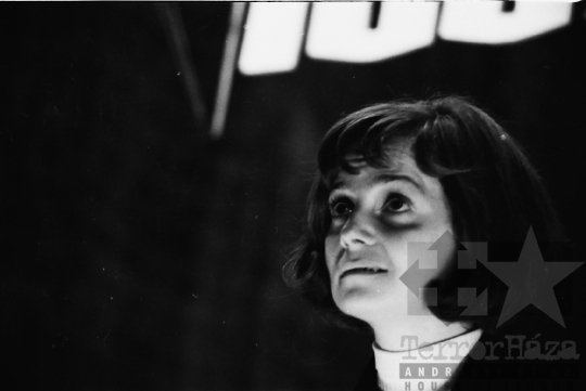 AZONOSÍTÓ: THM-BJ-00717 Férfi beszédet mond - transzparensen felirat: "Munkánk minőségének és hatékonyságának javításával, többletvállalásokkal készülünk a NAGY OKT. SZOC. FORR. 60. évfordulójára". [Az októberi orosz forradalom (kommunista propagandában: nagy októberi szocialista forradalom) 1917. november 6–12. (október 24–30.) között zajlott, amelynek során a bolsevikok a Téli Palota ostroma után az ott székelő Ideiglenes Kormány tagjait letartóztatták, és Lenin vezetésével, akit a Népbiztosok Tanácsa elnökévé választottak, puccsal átvették a hatalmat. Hazánkban ez a nap 1950-től 1989-ig pártállami ünnep volt.] [A szocialista brigádmozgalom szovjet mintára az 1950-es évek végén kezdett kibontakozni Magyarországon, és rendszerváltoztatáskor szűnt meg. Kezdetben csak az ipari üzemekben és gyárakban alakultak meg a brigádok, majd az agráriumban és a hivatali szférában is létrejöttek. A mozgalom jelszava: „Szocialista módon dolgozni, tanulni és élni” volt.] HELYSZÍN: Szekszárd, Tolna megye DÁTUM: 1977 FOTÓS: Bakó Jenő
