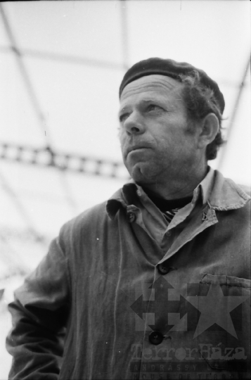 építkezés svájcisapka portré Szekszárd Tolna megye Magyarország 1977 Bakó JenőFotó részletei