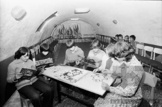 úttörőklub társasjáték Ki nevet a végén? újság zászló gyerek ifjúsági mozgalmi élet Mórágy Tolna megye Magyarország 1977 Bakó JenőFotó részletei