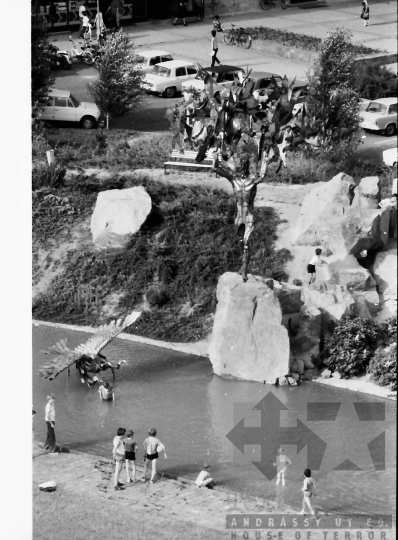 fürdőzés gyerek szobor szocialista művészet autó park Szekszárd Tolna megye Magyarország 1980 Bakó JenőFotó részletei
