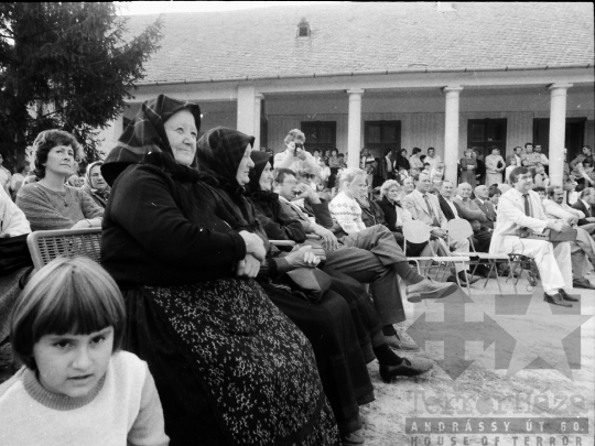 AZONOSÍTÓ: THM-BJ-00716a A rendezvény résztvevői. [A szocialista brigádmozgalom szovjet mintára az 1950-es évek végén kezdett kibontakozni Magyarországon, és rendszerváltoztatáskor szűnt meg. Kezdetben csak az ipari üzemekben és gyárakban alakultak meg a brigádok, majd az agráriumban és a hivatali szférában is létrejöttek. A mozgalom jelszava: „Szocialista módon dolgozni, tanulni és élni” volt.] HELYSZÍN: Szekszárd, Tolna megye DÁTUM: 1977 FOTÓS: Bakó Jenő