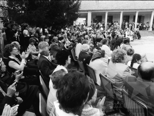 AZONOSÍTÓ: THM-BJ-00715 A rendezvény résztvevői. [A szocialista brigádmozgalom szovjet mintára az 1950-es évek végén kezdett kibontakozni Magyarországon, és rendszerváltoztatáskor szűnt meg. Kezdetben csak az ipari üzemekben és gyárakban alakultak meg a brigádok, majd az agráriumban és a hivatali szférában is létrejöttek. A mozgalom jelszava: „Szocialista módon dolgozni, tanulni és élni” volt.] HELYSZÍN: Szekszárd, Tolna megye DÁTUM: 1977 FOTÓS: Bakó Jenő