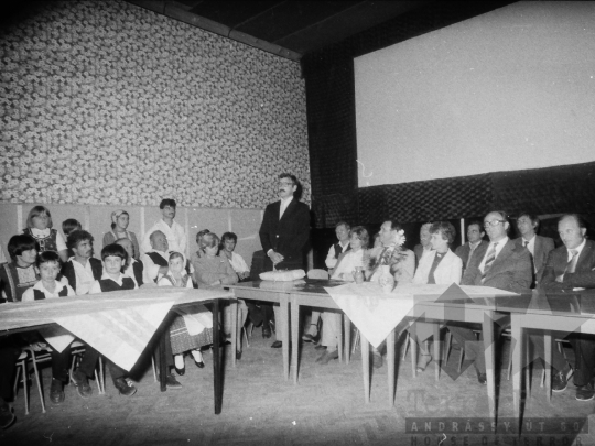 AZONOSÍTÓ: THM-BJ-00716a A rendezvény résztvevői. [A szocialista brigádmozgalom szovjet mintára az 1950-es évek végén kezdett kibontakozni Magyarországon, és rendszerváltoztatáskor szűnt meg. Kezdetben csak az ipari üzemekben és gyárakban alakultak meg a brigádok, majd az agráriumban és a hivatali szférában is létrejöttek. A mozgalom jelszava: „Szocialista módon dolgozni, tanulni és élni” volt.] HELYSZÍN: Szekszárd, Tolna megye DÁTUM: 1977 FOTÓS: Bakó Jenő