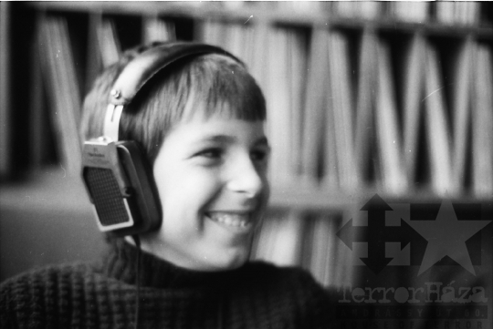 könyvtár zeneműtár fülhallgató diák iskola hanglemez Szekszárd Tolna megye Magyarország 1985 Bakó JenőFotó részletei