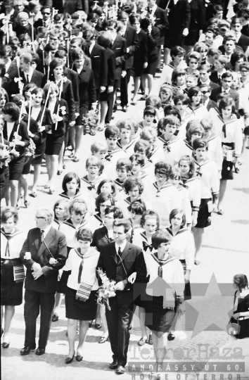 gimnázium ballagás diák iskola ünnepség évzáró ünneplő tarisznya matrózblúz Szekszárd Tolna megye Magyarország 1967 Bakó JenőFotó részletei