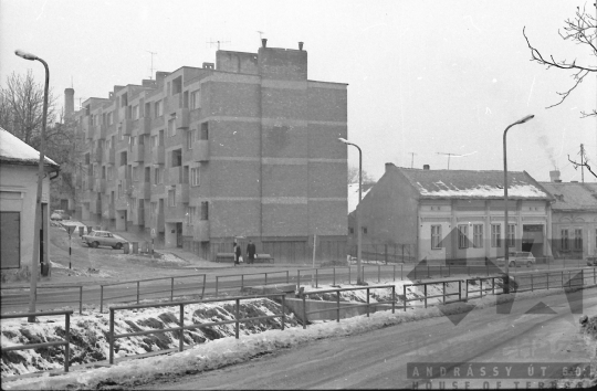 AZONOSÍTÓ: THM-BJ-00717 Férfi beszédet mond - transzparensen felirat: "Munkánk minőségének és hatékonyságának javításával, többletvállalásokkal készülünk a NAGY OKT. SZOC. FORR. 60. évfordulójára". [Az októberi orosz forradalom (kommunista propagandában: nagy októberi szocialista forradalom) 1917. november 6–12. (október 24–30.) között zajlott, amelynek során a bolsevikok a Téli Palota ostroma után az ott székelő Ideiglenes Kormány tagjait letartóztatták, és Lenin vezetésével, akit a Népbiztosok Tanácsa elnökévé választottak, puccsal átvették a hatalmat. Hazánkban ez a nap 1950-től 1989-ig pártállami ünnep volt.] [A szocialista brigádmozgalom szovjet mintára az 1950-es évek végén kezdett kibontakozni Magyarországon, és rendszerváltoztatáskor szűnt meg. Kezdetben csak az ipari üzemekben és gyárakban alakultak meg a brigádok, majd az agráriumban és a hivatali szférában is létrejöttek. A mozgalom jelszava: „Szocialista módon dolgozni, tanulni és élni” volt.] HELYSZÍN: Szekszárd, Tolna megye DÁTUM: 1977 FOTÓS: Bakó Jenő