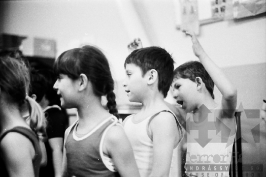 általános iskola iskola tornaóra tanterem osztály diák tornaruha Mórágy Tolna megye Magyarország 1986 Bakó JenőFotó részletei