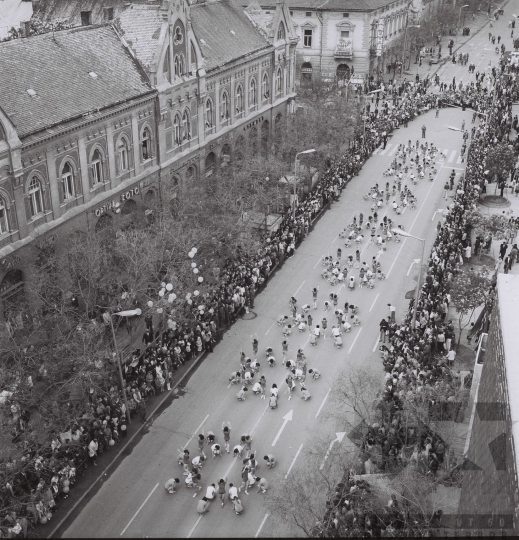 szocialista állami ünnep május 1. munka ünnepe felvonulás tornabemutató utcakép Szekszárd Tolna megye Magyarország 1980 Bakó JenőFotó részletei
