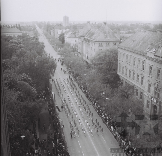szocialista állami ünnep május 1. munka ünnepe felvonulás utcakép Szekszárd Tolna megye Magyarország 1980 Bakó JenőFotó részletei
