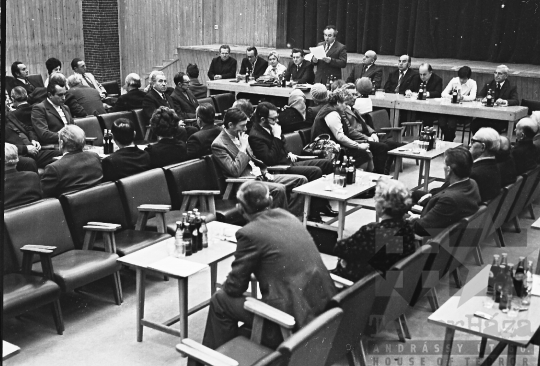 AZONOSÍTÓ: THM-BJ-00716 A rendezvény résztvevői. [A szocialista brigádmozgalom szovjet mintára az 1950-es évek végén kezdett kibontakozni Magyarországon, és rendszerváltoztatáskor szűnt meg. Kezdetben csak az ipari üzemekben és gyárakban alakultak meg a brigádok, majd az agráriumban és a hivatali szférában is létrejöttek. A mozgalom jelszava: „Szocialista módon dolgozni, tanulni és élni” volt.] HELYSZÍN: Szekszárd, Tolna megye DÁTUM: 1977 FOTÓS: Bakó Jenő