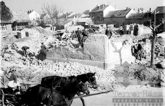 utcakép bontás tégla ló szekér svájcisapka Szekszárd Tolna megye Magyarország 1976 Bakó JenőFotó részletei