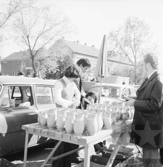 árus korsó autó vásárló kerámia vásár Székesfehérvár Fejér megye Magyarország 1977 Bakó JenőFotó részletei