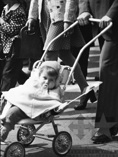 szocialista állami ünnep május 1. munka ünnepe gyerek babakocsi Szekszárd Tolna megye Magyarország 1976 Bakó JenőFotó részletei
