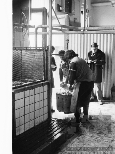 AZONOSÍTÓ: THM-BJ-00468 Férfi asszonyokat köszönt virággal a gyár bejáratánál. [A nemzetközi nőnap szovjet mintára Magyarországon 1948-tól egészen a rendszerváltoztatásig kötelező ünnepnap volt március 8-án.] [A Tolnai Selyemfonógyárat 1900-ben Bezerédj Pál alapította. A gyár fő profilja a természetes selyemszálak gyártása volt. 1948-ban államosították, majd az 1955-ben megalakított Magyar Selyemipar Vállalathoz csatolták. 1970-ben megszűnt a selyemfonás, helyette szintetikus szövetek gyártása folyt. 1991-ben privatizálták.] HELYSZÍN: Tolna, Tolna megye DÁTUM: 1977 FOTÓS: Bakó Jenő