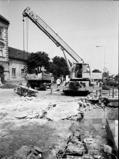 utcakép útépítés betonelem daru teherautó patak séd Szekszárd Tolna megye Magyarország 1979 Bakó Jenő