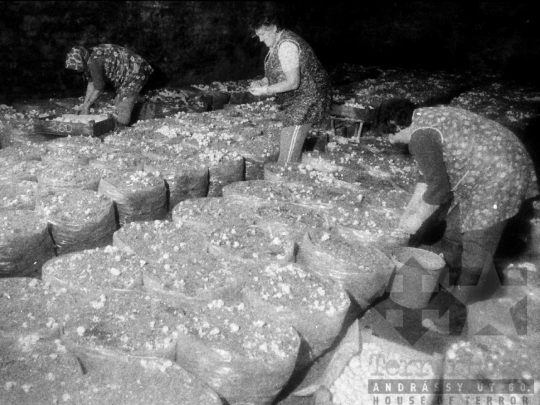 gomba szüret pince zsák láda vödör Bátaapáti Tolna megye Magyarország 1980 Bakó Jenő