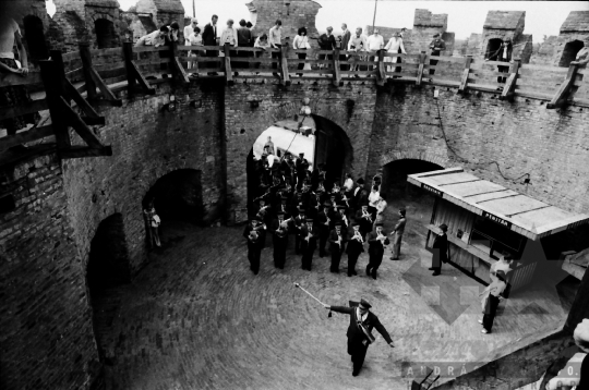 fesztivál várudvar zenekar egyenruha tamburmajor Siklós Baranya megye Magyarország 1980 Bakó JenőFotó részletei