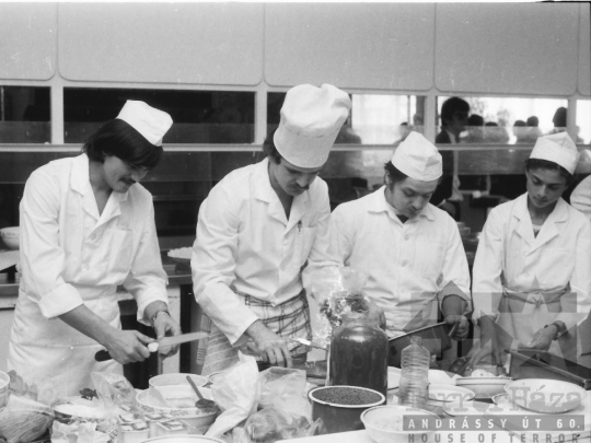 verseny szakács konyha séfruha kés tál befőttes üveg lábas Szekszárd Tolna megye Magyarország 1980 Bakó JenőFotó részletei