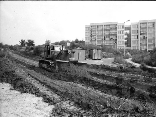 útépítés exkavátor lakótelep panelház szocreál Szekszárd Tolna megye Magyarország 1980 Bakó JenőFotó részletei