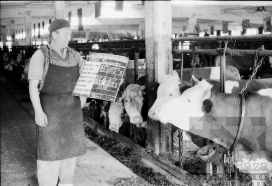 termelőszövetkezet szarvasmarha tehén istálló állattenyésztés svájcisapka Zomba Tolna megye Magyarország 1980 Bakó JenőFotó részletei