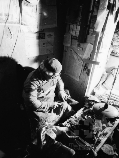 kisipar cipészmester műhely bőrvarrás svájcisapka szerszám Szekszárd Tolna megye Magyarország 1982 Bakó JenőFotó részletei