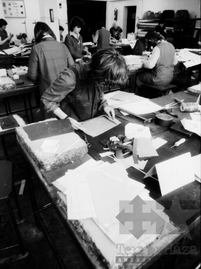 kesztyűgyár kesztyű üzem bőripar bőrszabászat Dombóvár Tolna megye Magyarország 1982 Bakó JenőFotó részletei