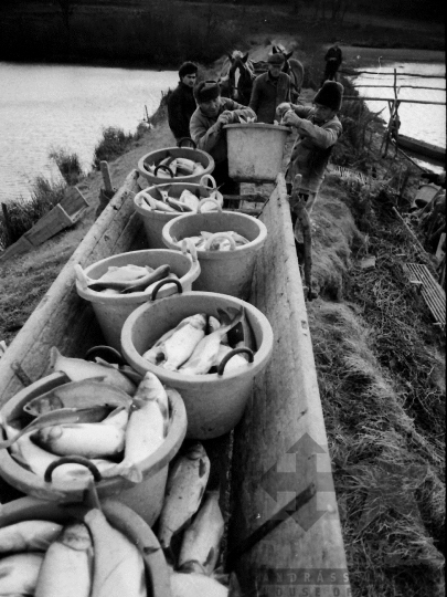 halász hal vödör halászat Tamási Tolna megye Magyarország 1982 Bakó JenőFotó részletei