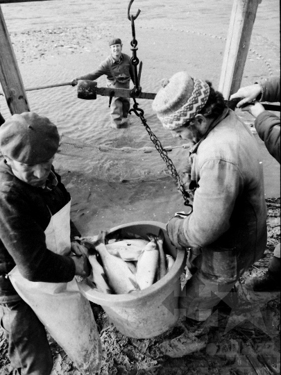 halász halászháló hal mérleg svájcisapka halászat Tamási Tolna megye Magyarország 1982 Bakó JenőFotó részletei