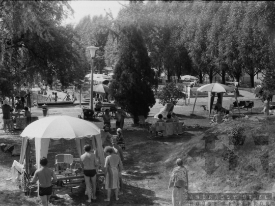 nyaralás nyár strand fürdőruha sátor Dombóvár Tolna megye Magyarország 1983 Bakó JenőFotó részletei