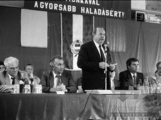 [MSZMP: A Magyar Dolgozók Pártja jogutódjaként működő Magyar Szocialista Munkáspárt az 1956-os forradalom és szabadságharc leverésétől az 1989-es rendszerváltoztatásig állampártként, kizárólagosan, szovjet támogatással gyakorolta a hatalmat. Főtitkára, ill. első titkára 1956 és 1988 között Kádár János, a pártállam vezetője volt.]