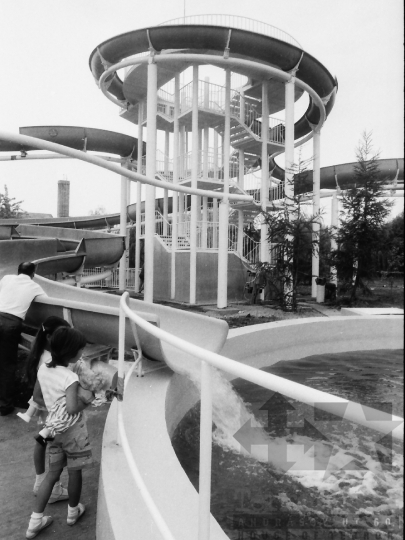 nyaralás nyár strand fürdőzés csúszda medence Dombóvár Tolna megye Magyarország 1985 Bakó Jenő