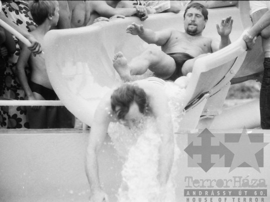 AZONOSÍTÓ: THM-BJ-00718 Néptánc produkció a színpadon - transzparenseken feliratok: "Hatékonyabb munkával a XI. pártkongresszus határozatainak következetes végrehajtásáért" "Munkánk minőségének és hatékonyságának javításával, többletvállalásokkal készülünk a NAGY OKT. SZOC. FORR. 60. évfordulójára". [Az októberi orosz forradalom (kommunista propagandában: nagy októberi szocialista forradalom) 1917. november 6–12. (október 24–30.) között zajlott, amelynek során a bolsevikok a Téli Palota ostroma után az ott székelő Ideiglenes Kormány tagjait letartóztatták, és Lenin vezetésével, akit a Népbiztosok Tanácsa elnökévé választottak, puccsal átvették a hatalmat. Hazánkban ez a nap 1950-től 1989-ig pártállami ünnep volt.] [A szocialista brigádmozgalom szovjet mintára az 1950-es évek végén kezdett kibontakozni Magyarországon, és rendszerváltoztatáskor szűnt meg. Kezdetben csak az ipari üzemekben és gyárakban alakultak meg a brigádok, majd az agráriumban és a hivatali szférában is létrejöttek. A mozgalom jelszava: „Szocialista módon dolgozni, tanulni és élni” volt.] HELYSZÍN: Szekszárd, Tolna megye DÁTUM: 1977 FOTÓS: Bakó Jenő