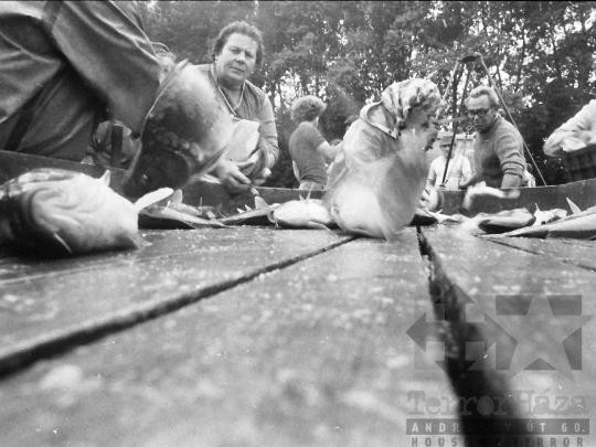 termelőszövetkezet halász hal halászat Tamási Tolna megye Magyarország 1985 Bakó JenőFotó részletei
