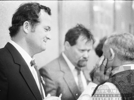AZONOSÍTÓ: THM-BJ-00714 Férfi beszédet mond. [A szocialista brigádmozgalom szovjet mintára az 1950-es évek végén kezdett kibontakozni Magyarországon, és rendszerváltoztatáskor szűnt meg. Kezdetben csak az ipari üzemekben és gyárakban alakultak meg a brigádok, majd az agráriumban és a hivatali szférában is létrejöttek. A mozgalom jelszava: „Szocialista módon dolgozni, tanulni és élni” volt.] HELYSZÍN: Szekszárd, Tolna megye DÁTUM: 1977 FOTÓS: Bakó Jenő
