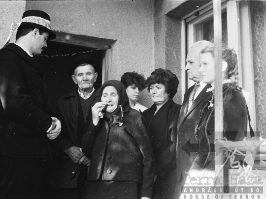 esküvő házasság család népviselet násznép vőlegény pántlikás kalap ünnepség Szekszárd Tolna megye Magyarország 1987 Bakó JenőFotó részletei