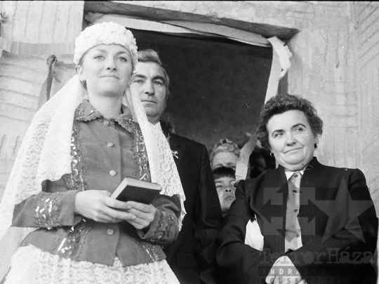 esküvő házasság család népviselet ünnepség násznép menyasszony örömapa örömanya Szekszárd Tolna megye Magyarország 1987 Bakó JenőFotó részletei