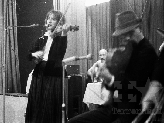 esküvő házasság család népviselet ünnepség lakodalom lagzi násznép zenekar zenész hegedű mikrofon Szekszárd Tolna megye Magyarország 1987 Bakó Jenő