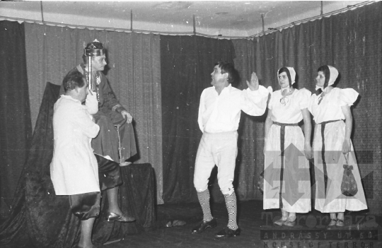 színház előadás színész színpad amatőr színjátszás jelmez Závod Tolna megye Magyarország 1968 Bakó JenőFotó részletei