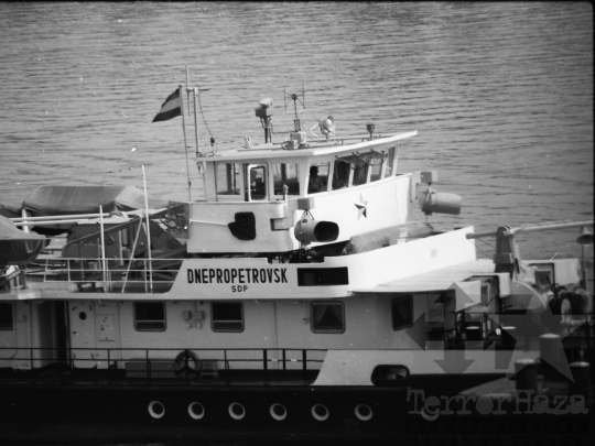 hajó zászló vörös csillag szállítás hajózás Dunaföldvár Tolna megye Magyarország 1976 Bakó JenőFotó részletei