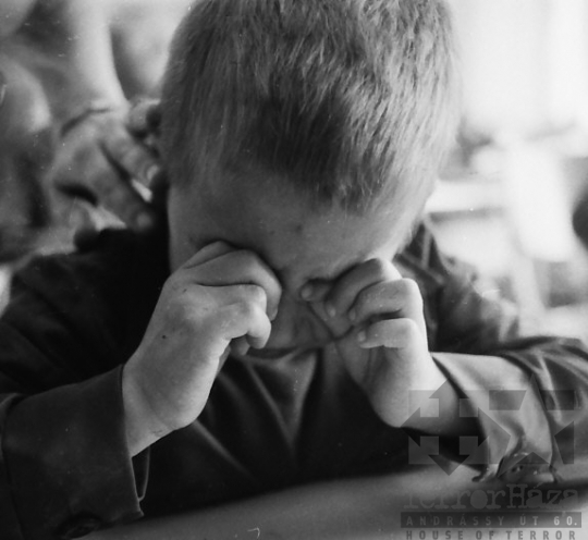 AZONOSÍTÓ: THM-BJ-00717 Férfi beszédet mond - transzparensen felirat: "Munkánk minőségének és hatékonyságának javításával, többletvállalásokkal készülünk a NAGY OKT. SZOC. FORR. 60. évfordulójára". [Az októberi orosz forradalom (kommunista propagandában: nagy októberi szocialista forradalom) 1917. november 6–12. (október 24–30.) között zajlott, amelynek során a bolsevikok a Téli Palota ostroma után az ott székelő Ideiglenes Kormány tagjait letartóztatták, és Lenin vezetésével, akit a Népbiztosok Tanácsa elnökévé választottak, puccsal átvették a hatalmat. Hazánkban ez a nap 1950-től 1989-ig pártállami ünnep volt.] [A szocialista brigádmozgalom szovjet mintára az 1950-es évek végén kezdett kibontakozni Magyarországon, és rendszerváltoztatáskor szűnt meg. Kezdetben csak az ipari üzemekben és gyárakban alakultak meg a brigádok, majd az agráriumban és a hivatali szférában is létrejöttek. A mozgalom jelszava: „Szocialista módon dolgozni, tanulni és élni” volt.] HELYSZÍN: Szekszárd, Tolna megye DÁTUM: 1977 FOTÓS: Bakó Jenő