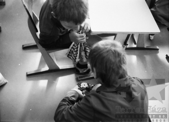 diák iskola általános iskola tanterem köpeny iskolapad Szekszárd Tolna megye Magyarország 1976 Bakó JenőFotó részletei