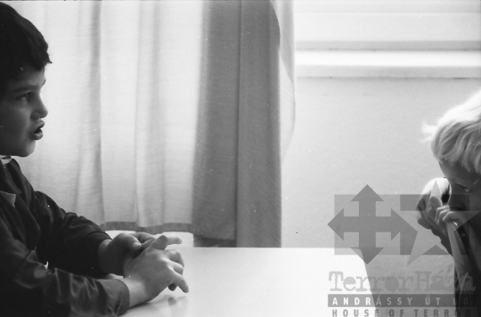 diák iskola általános iskola tanterem köpeny iskolapad Szekszárd Tolna megye Magyarország 1976 Bakó JenőFotó részletei