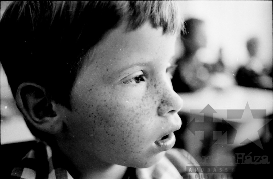 diák iskola általános iskola tanterem köpeny iskolapad Szekszárd Tolna megye Magyarország 1976 Bakó JenőFotó részletei