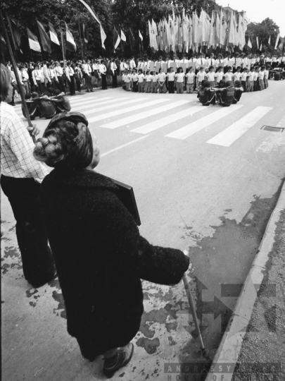 szocialista állami ünnep május 1. munka ünnepe felvonulás zászló Szekszárd Tolna megye Magyarország 1976 Bakó JenőFotó részletei
