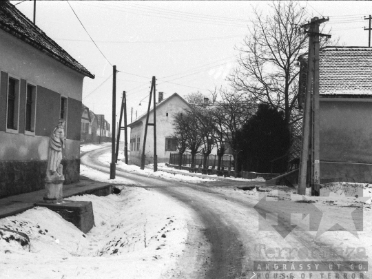 tél hó utcakép szobor Mucsi Tolna megye Magyarország 1976 Bakó JenőFotó részletei