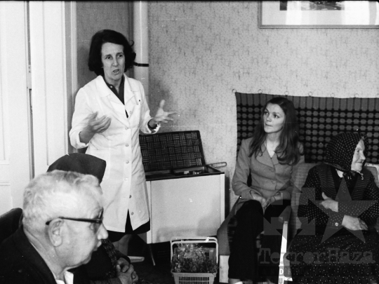 szociális otthon olajkályha köpeny kosár szociális ellátás öregség Szekszárd Tolna megye Magyarország 1976 Bakó JenőFotó részletei