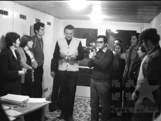 AZONOSÍTÓ: THM-BJ-00716 A rendezvény résztvevői. [A szocialista brigádmozgalom szovjet mintára az 1950-es évek végén kezdett kibontakozni Magyarországon, és rendszerváltoztatáskor szűnt meg. Kezdetben csak az ipari üzemekben és gyárakban alakultak meg a brigádok, majd az agráriumban és a hivatali szférában is létrejöttek. A mozgalom jelszava: „Szocialista módon dolgozni, tanulni és élni” volt.] HELYSZÍN: Szekszárd, Tolna megye DÁTUM: 1977 FOTÓS: Bakó Jenő